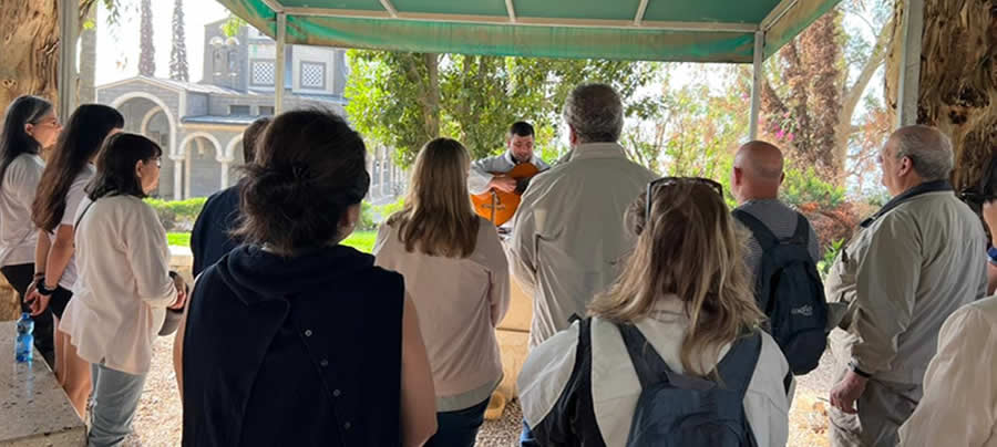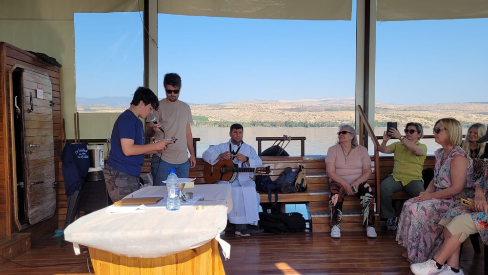 Peregrinación espiritual a Tierra Santa: Misa en el barco en medio del lago de Tiberíades (Mar de Galilea): Entregando las tormentas de la vida. Tabgha: lugar de la multiplicación de los panes y de los peces: Reflexión y tiempo de oración pidiendo a Dios que multiplique sus bendiciones. Río Jordán: Renovación de las promesas bautismales y orando por una nueva efusión del Espíritu Santo.